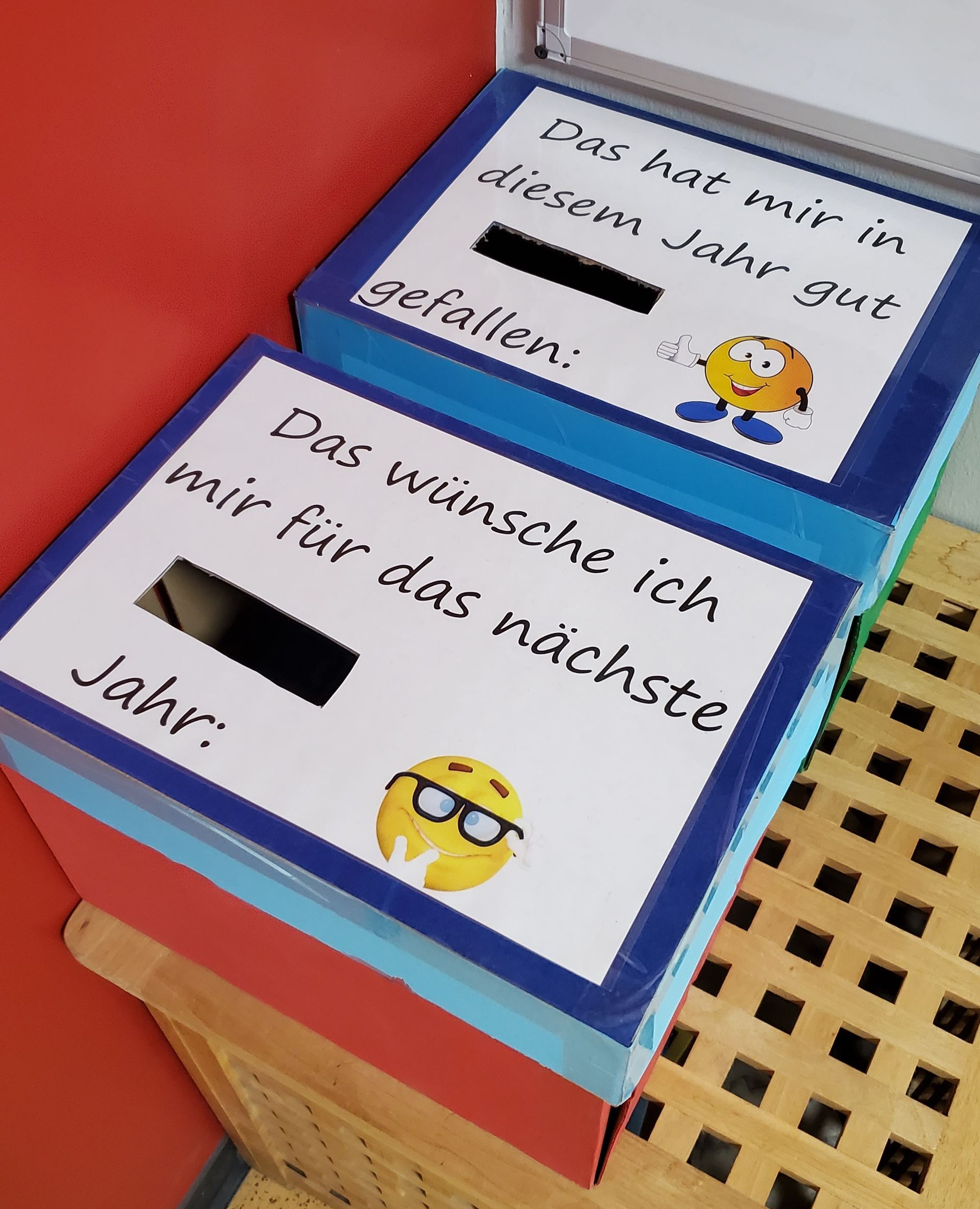 Im Eingangsbereich der Schule konnten die Kinder auf kleine Zettel schreiben, was ihnen in diesem Jahr gut gefallen hat und was sie sich für das nächste Jahr wünschen. Fleißig wurden die bunten Zettel beschriftet und es wurden viele Ideen gesammelt, was wir als Schulgemeinschaft unternehmen können. Es bleibt also spannend, welche Wünsche umgesetzt werden.