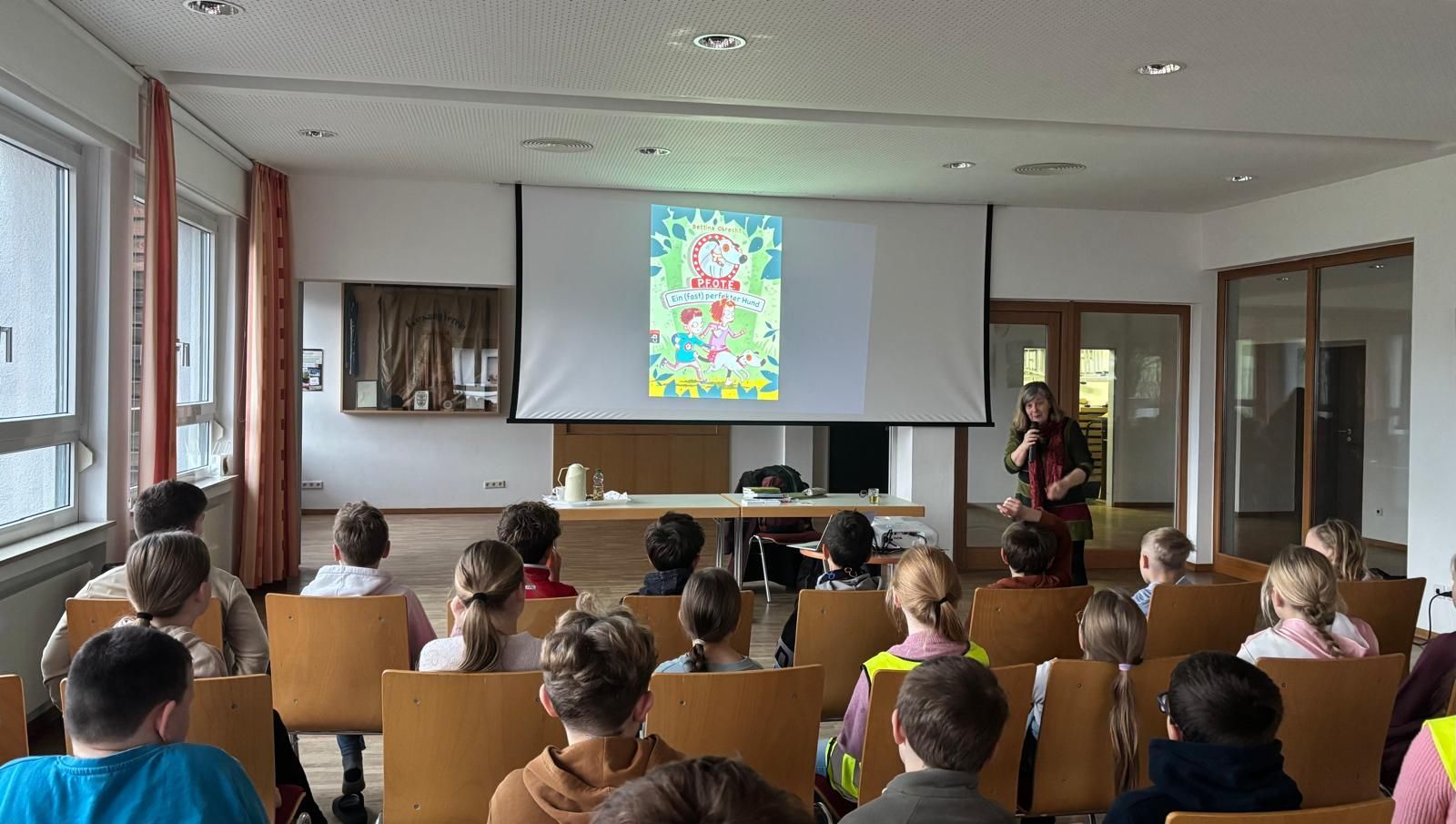 Am Mittwoch, den 26.11.2025, besuchte uns die Autorin Bettina Obrecht. Sie las aus ihren Werken "P.F.O.T.E. - Ein (fast) perfekter Hund" und "Grompel - Chaos im Anmarsch" vor. Im Anschluss stand sie den Kindern der 3.+4. Klassen für Fragen zur Verfügung.